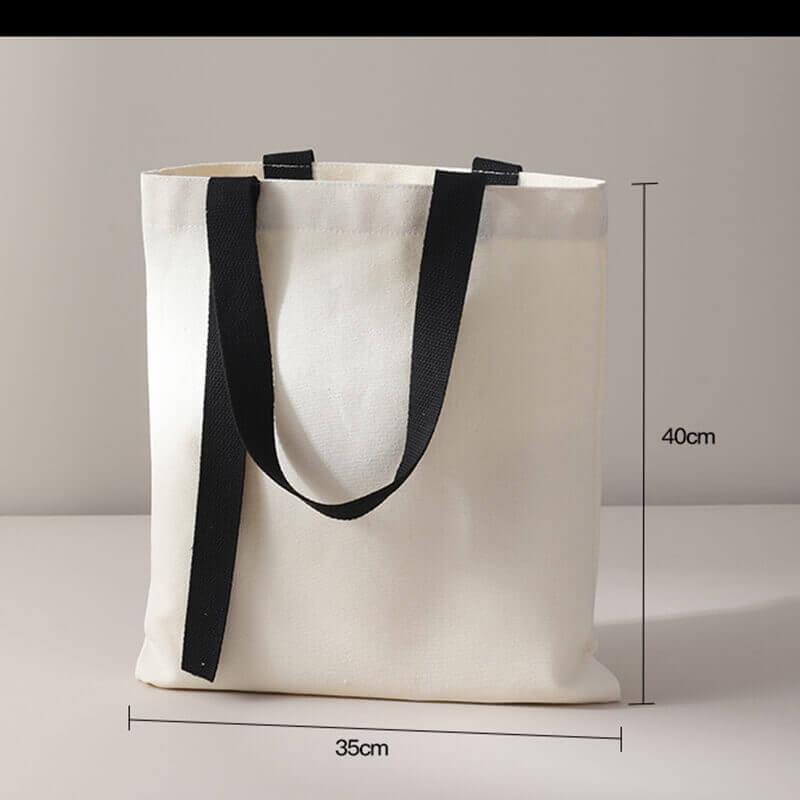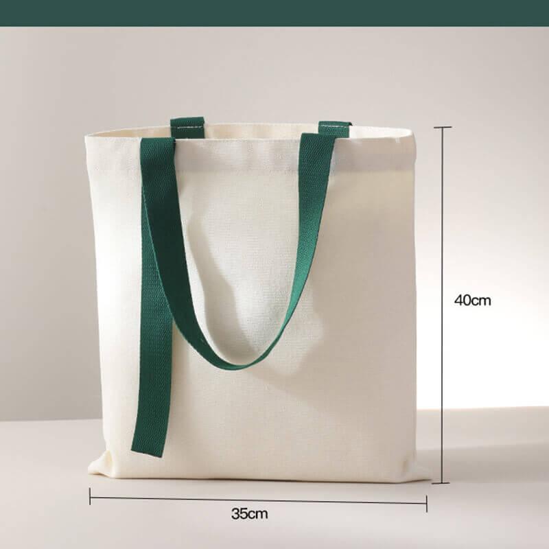 กระเป๋าผ้าสกรีนโลโก้ บริษัท แถบสีดำ แดง เขียว น้ำเงิน แนวตั้ง